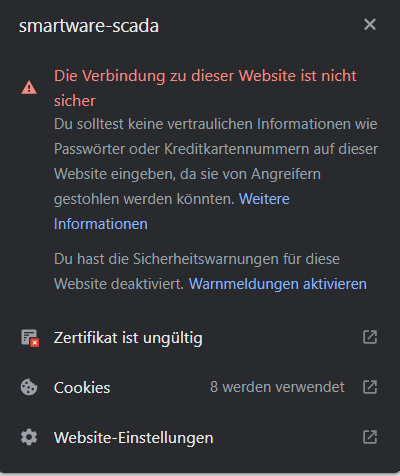 Klicken Sie zunächst innerhalb der URL-Leiste Ihres Browsers auf "Nicht Sicher".