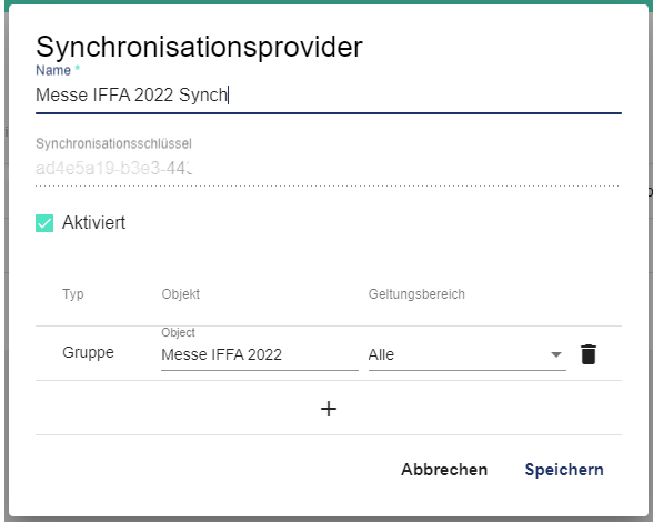 Synchronisationsprovider erstellen → Gruppe auswählen