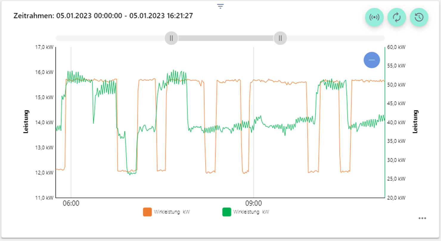 ![]() | Aktivierung des Livemodus. Anschließend werden max. die letzten 24 h dargestellt inkl. aktueller Live-Daten angezeigt. |