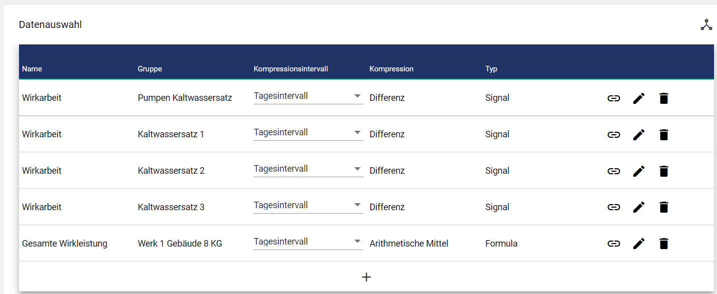 Über das Plus wird das Entity-Select Fenster geöffnet. Zuvor angelegte Signale können hinzugefügt werden. Über die Checkboxen können mehrere Signale markiert und gleichzeitig ausgewählt werden.