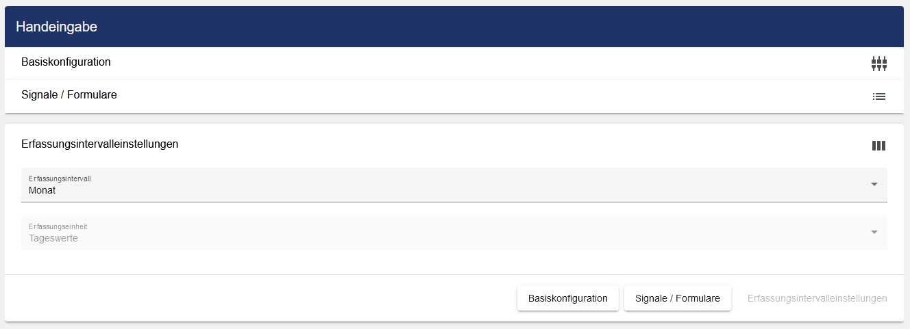 Klicken Sie auf den Reiter „Erfassungsintervalleinstellungen“ und stellen den Erfassungsintervall ein. Unter dem Drop-down-Menü „Erfassungsintervall“ haben Sie die Wahl zwischen Woche, Monat und Jahr