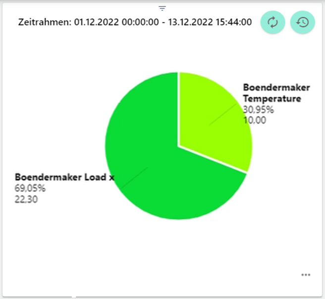 Das Kreisdiagramm Widget stellt prozentual dar, wie sich die einzelnen Signalwerte über die eingestellte Periode verhalten haben. Um ein Kreisdiagramm-Widget nutzen zu können, benötigen Sie ein analoges Eingangs-Signal.