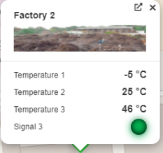 Mit der Landkarte visualisieren Sie eine Open-Street-Map Karte mit unterschiedlichen Markern und Icons. Sie können so Ihre Objekte/Anlagen optimal darstellen und immer auf einen Blick sehen, ob an dem von Ihnen ausgewählten Landmarke eine Störung (nicht quittiertes Ereignis) oder ähnliches vorliegt. Dies kann helfen, Mitarbeiter zu benachrichtigen, um schnell und effizient Probleme zu lösen. Wenn ich einen Marker anklicke erhalte ich zusätzliche Informationen und die Möglichkeit in ein entsprechendes Dashboard zu “springen” (oben rechts der Pfeil, der aus dem Kästchen zeigt).