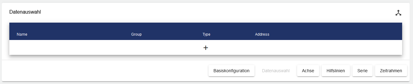 Über das Plus wird das Entity-Select Fenster geöffnet. Ein zuvor angelegtes Signal kann hinzugefügt werden. Über die Checkboxen können mehrere Signale markiert und gleichzeitig ausgewählt werden.