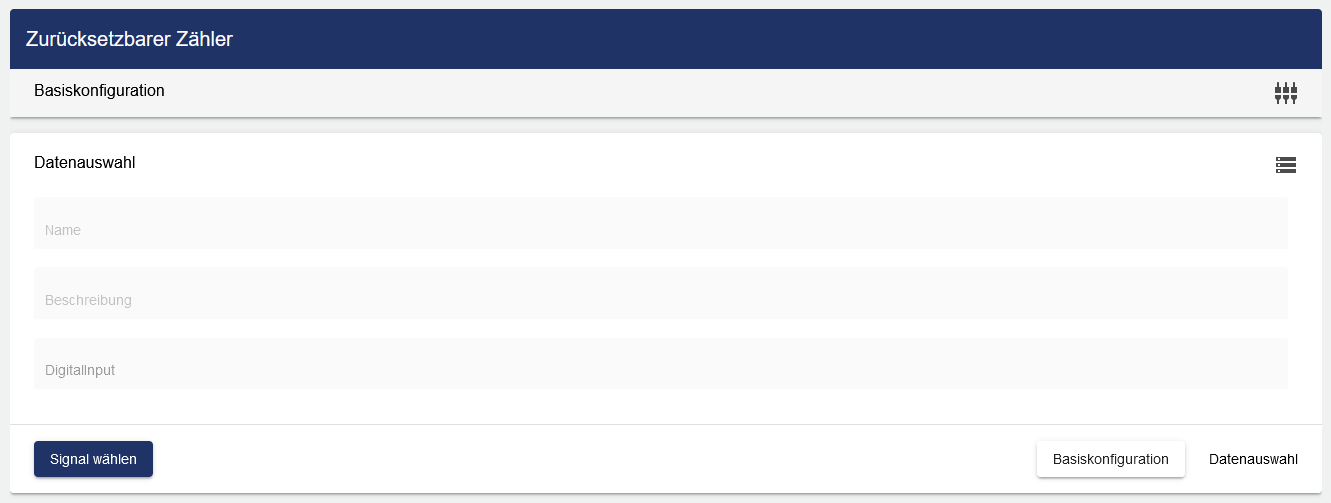 Wählen Sie das Widget Zurücksetzbare Zähler aus der Kategorie Signale aus.