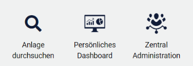 Anlage durchsuchen / Persönliches Dashboard / Zentrale Administration