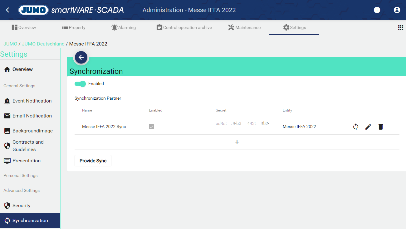 JUMO smartWARE SCADA → Administration → Einstellungen → Synchronisation