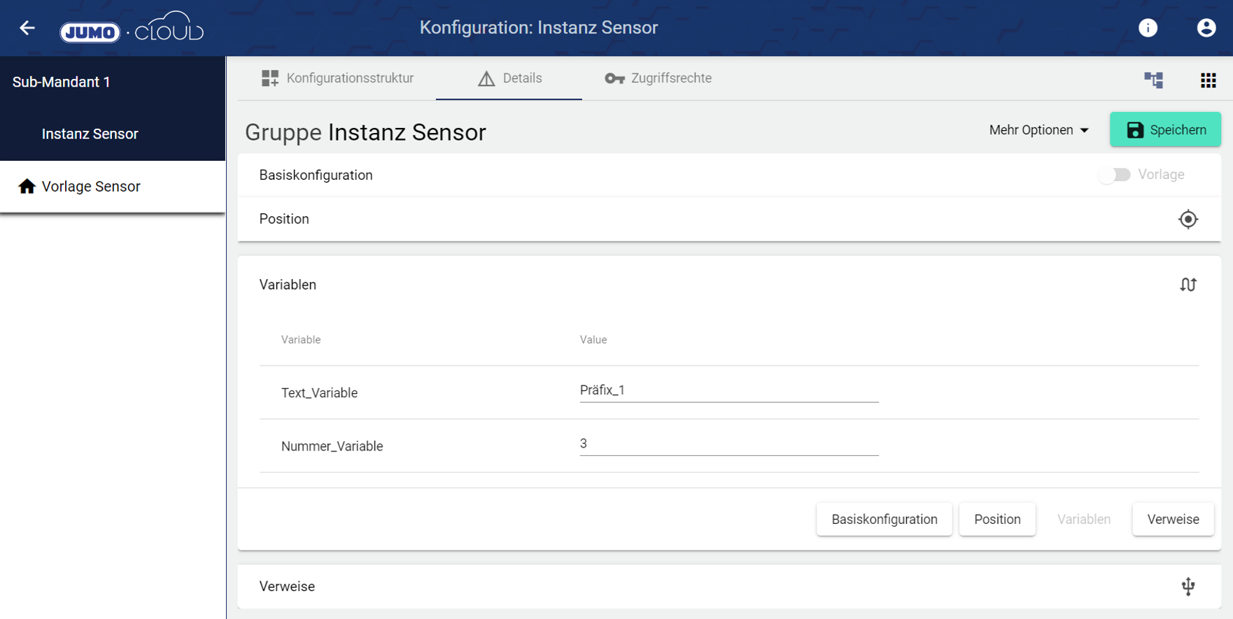 Innerhalb der Instanz-Gruppe können unter “Details” die angelegten Variablen beschrieben werden. Anschließend wird der Wert in jedem Feld, in dem diese verwendet wurde {Text_Variable}, eingetragen.