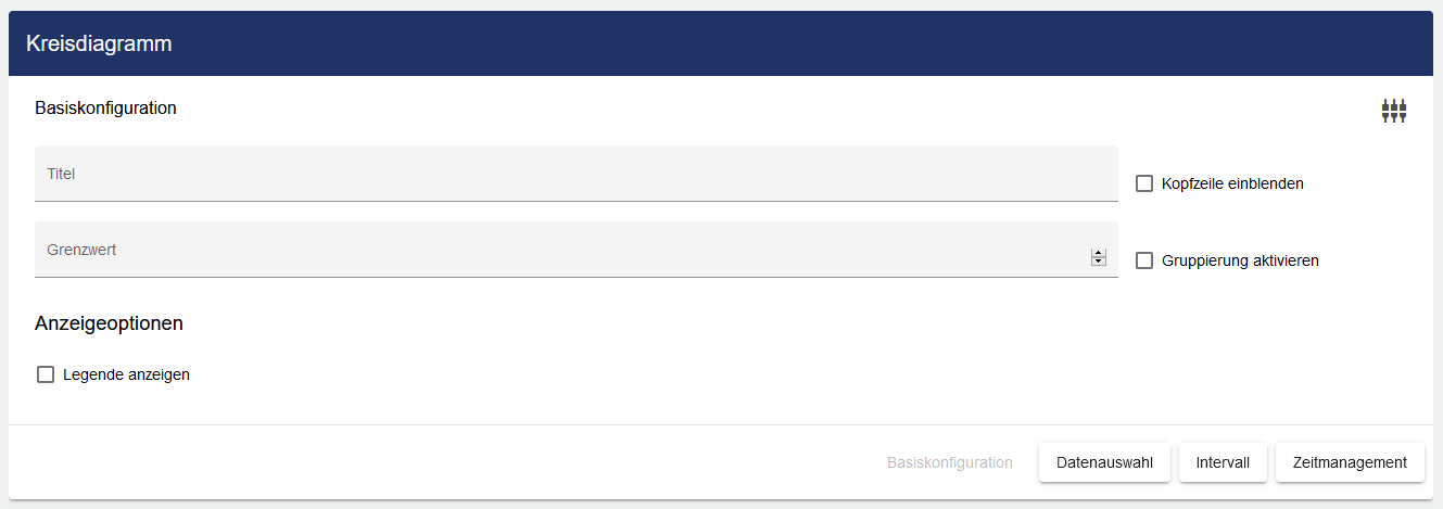 Passen Sie das Kreisdiagramm über die Basiskonfiguration an. Hier vergeben Sie Ihrem Kreisdiagramm zunächst einen geeigneten Titel und einen Grenzwert.