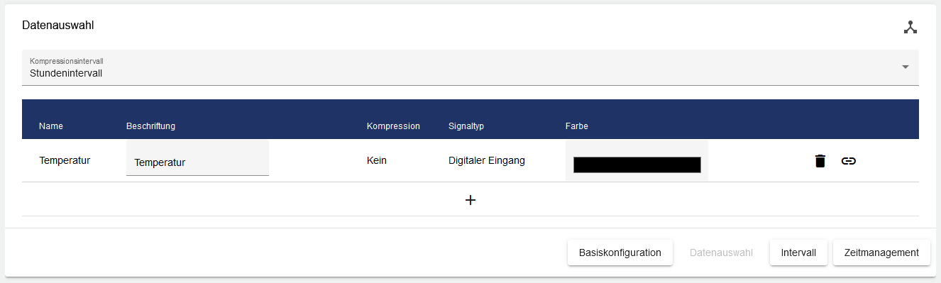 Sie können über „+” Icon weitere Signale hinzufügen und anschließend die Beschriftung und die Farbe des Signals im Diagramm wählen.