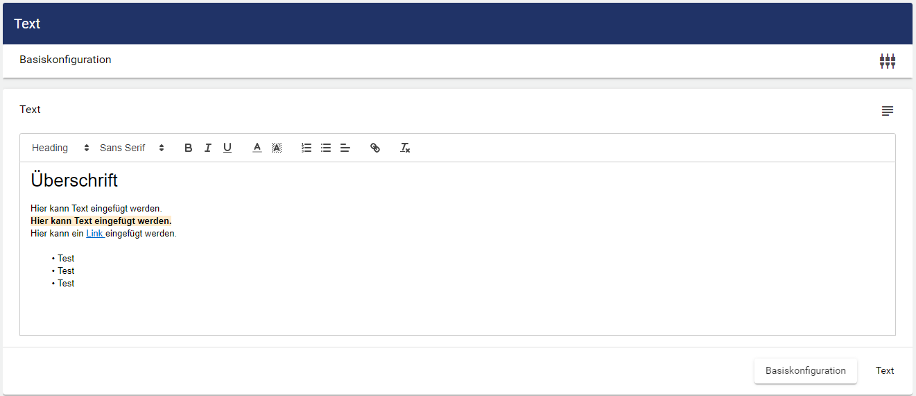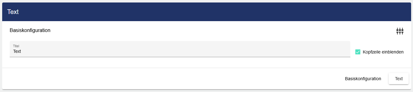 In der Basiskonfiguration des Textes vergeben Sie eine geeignete Beschriftung (Titel). Durch die Auswahl des Hakens kann die Kopfzeile eingeblendet werden.