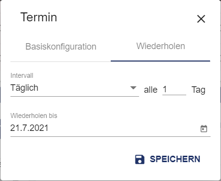 Hier können Sie nun detailliert ein Intervall festlegen, in welchem Zeitraum Sie diesen Termin wiederholen wollen. Außerdem können Sie einen Zeitpunkt festlegen, bis wann diese Wiederholung durchgeführt werden soll.