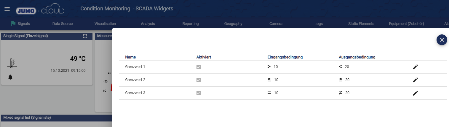2) Das Widget: Einzelsignal erlaubt es nun im Dashboard die zum Signal konfigurierten Bedingungen zu bearbeiten.