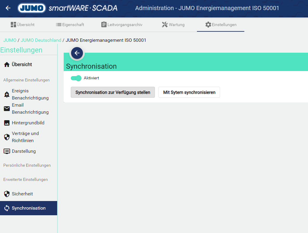 Synchronisation eines Mandanten in der Administration einstellbar: Synchronisation