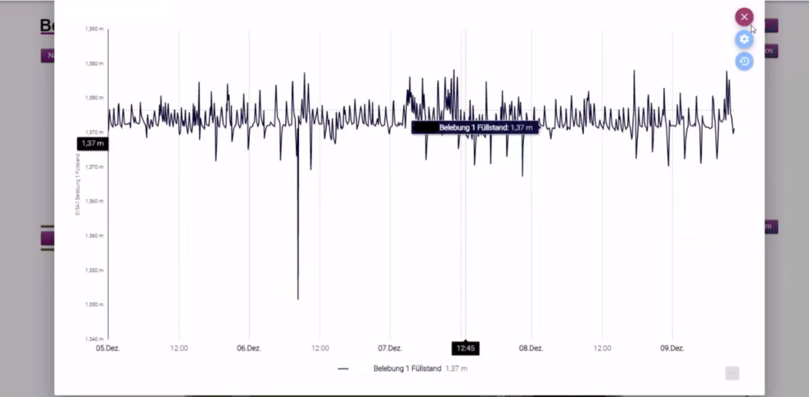 5) JUMO-Animator Erweiterung mit der Möglichkeit nun direkt Diagramme innerhalb von Prozessbildern aufzurufen. Sofern es die Möglichkeit gibt ein Diagramm aufzurufen, taucht ein Symbol wie hier dargestellt auf.
