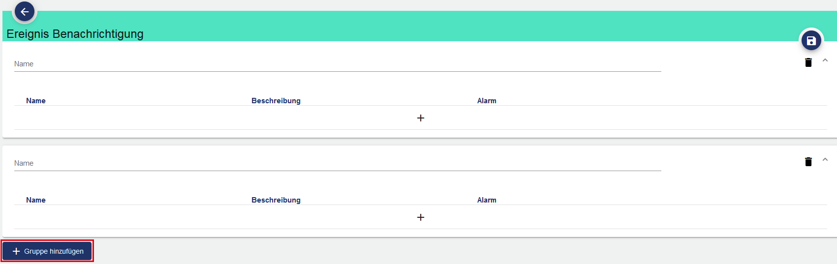 Über den Button “Gruppe hinzufügen” können weitere Ereignisgruppen erstellt werden.