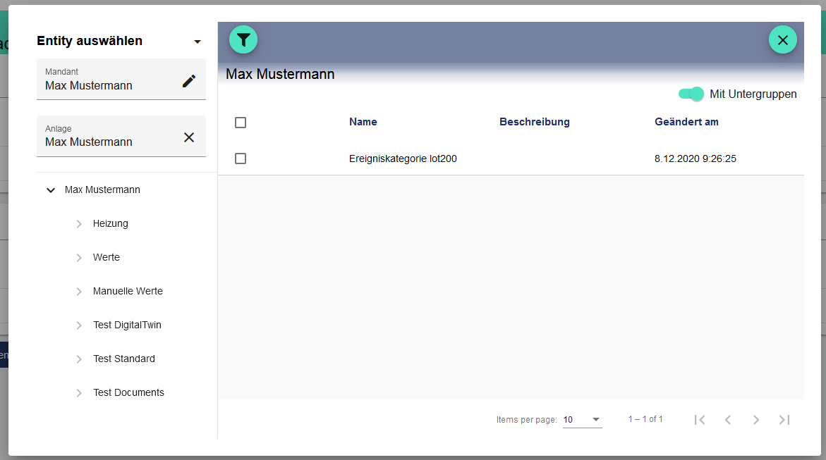 Mit einem Klick auf das “+” können der Ereignisgruppe Ereigniskategorien hinzugefügt werden.