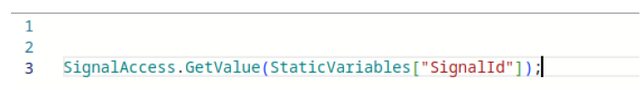 Mit der Funktion SignalAccess.GetValue({SignalID}): number | string kann der aktuellen Live-Wert des Signals, der über den Parameter spezifiziert wurde, ausgelesen werden. Der Wert wird als Nummer oder String zurückgegeben. Existiert das Signal nicht oder ist der Parameter {SignalID} leer, wird null zurückgegeben.
