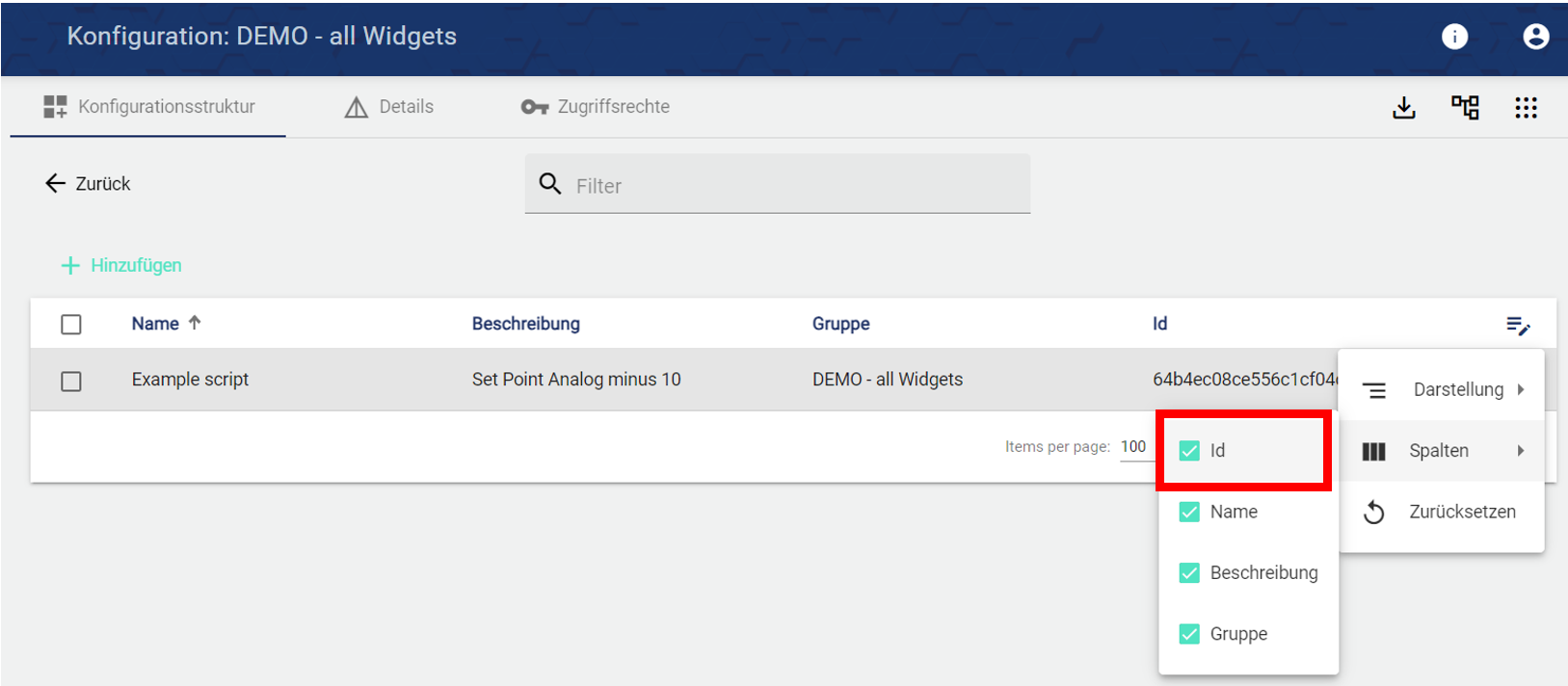 Die Konfigurationseinheit “Runtime Skript” kann nur benutzt werden, wenn die SCADA-Lizenz das Modul “Skript-Modul” beinhaltet.