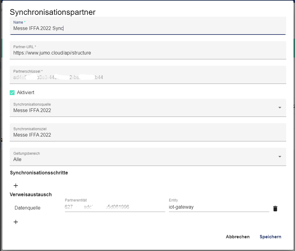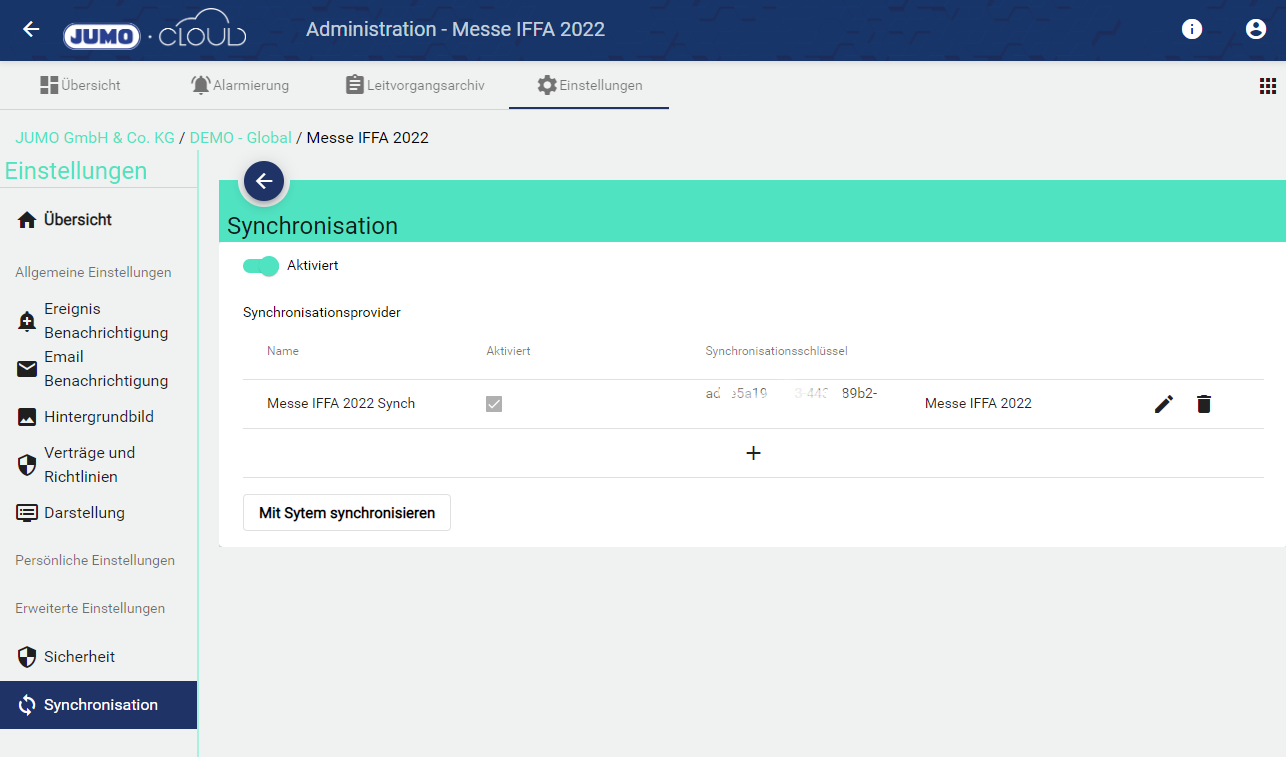 JUMO Cloud → Administration → Einstellungen → Synchronisation