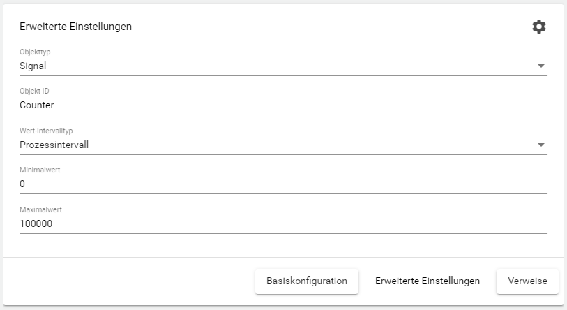 Plausibilitätüberwachung: Die Signalwerte (bzw. Formelwerte) aus dem ausgewählten “Objekt” müssen im gewählten “Intervalltyp” bleiben, damit kein Ereignis bzw. Alarm ausgelöst wird. Wird der Bereich überschritten, wird dieses ausgelöst. Diese Funktion stellt die Überprüfung von Zählern sicher. Dadurch können Ausfälle von Zählern schneller bemerkt werden.