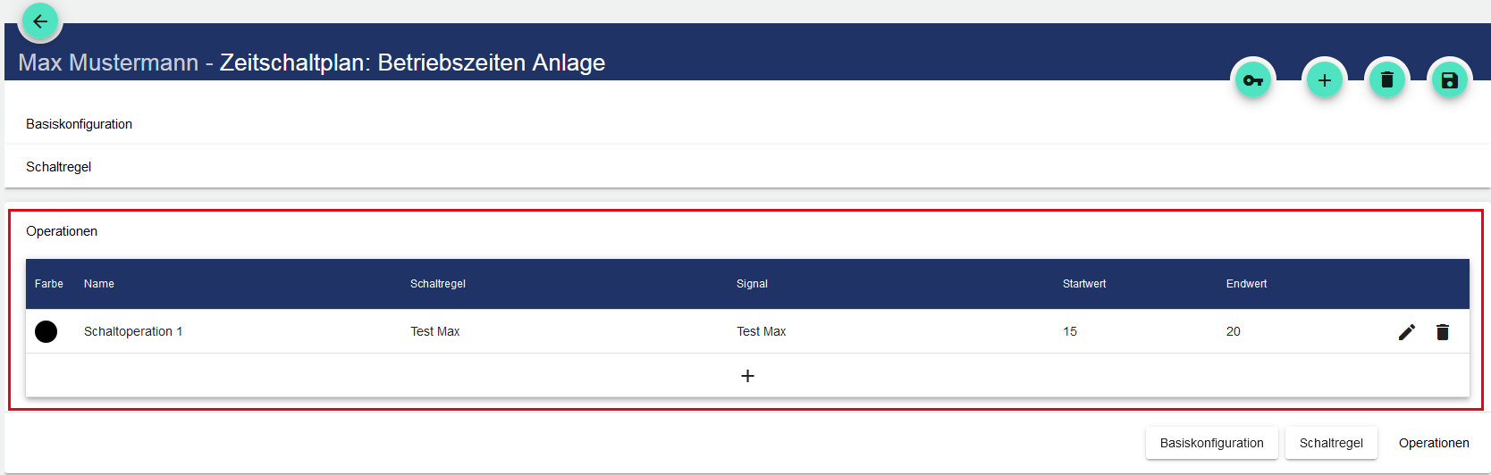 1. Über das Plus wird eine neue Schaltoperation hinterlegt. Den Namen der Operation vergeben. Im Feld “Schaltregel” kann man die vorher angelegt Schaltregel als Vorlage auswählen.