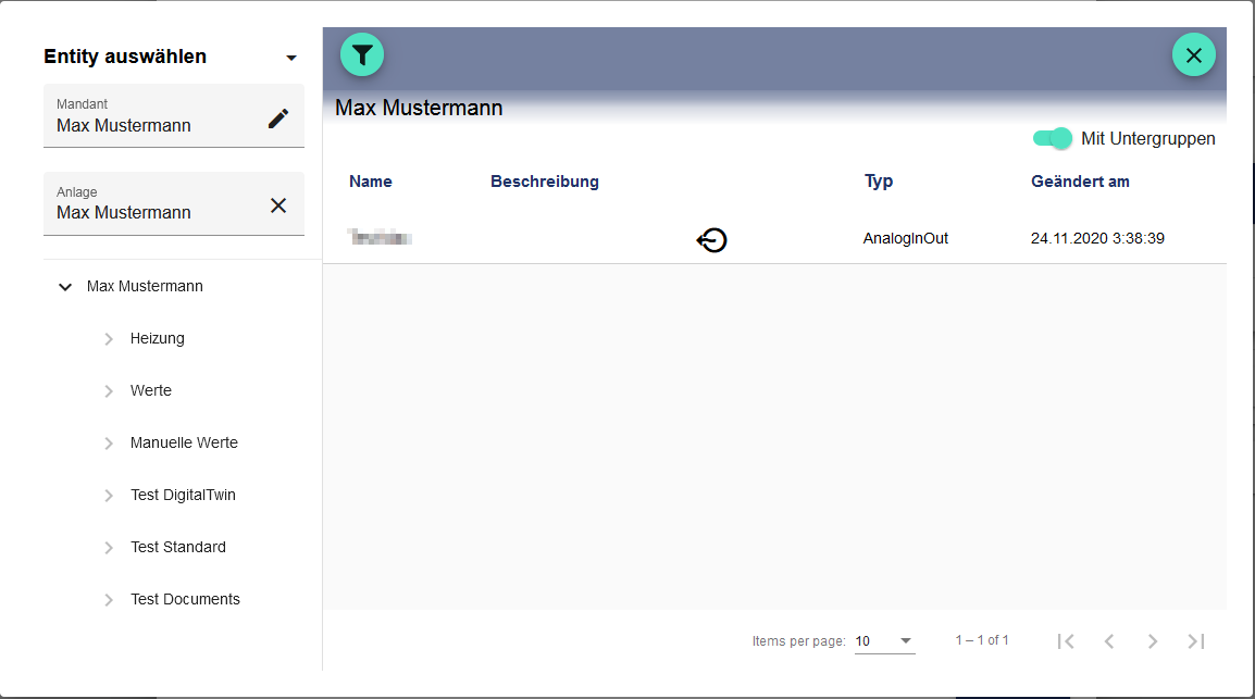 2. Im Feld “Signal” öffnet sich ein weiteres Fenster, in dem ein zuvor angelegtes Signal ausgewählt werden kann.