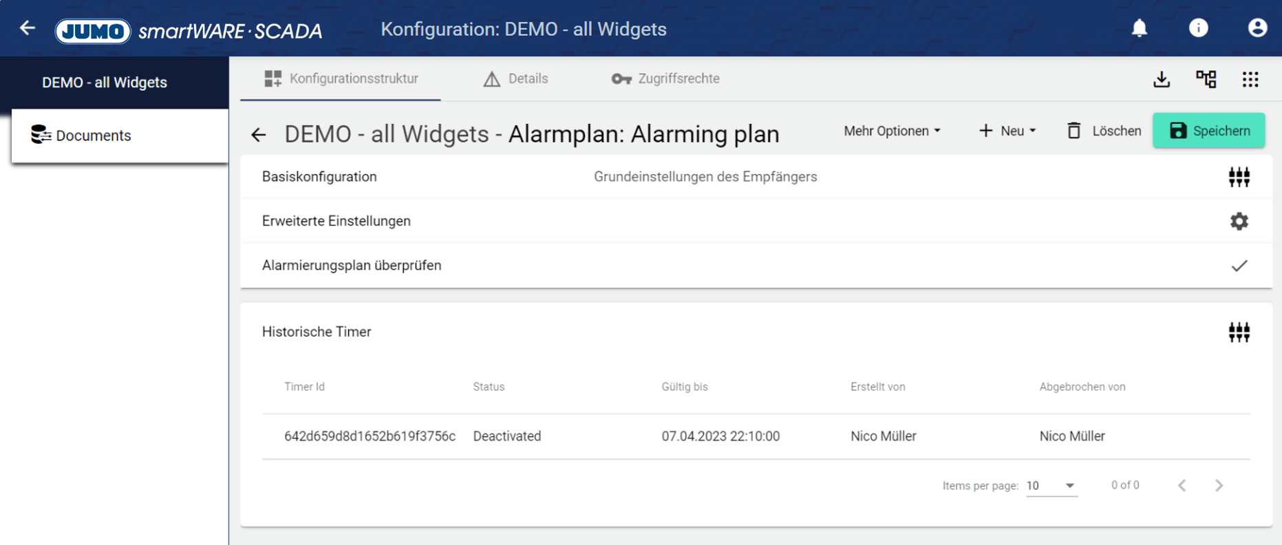 3.a) Ebenso stehen zwei neue Widgets zur Prüfung und Planung von Alarmplänen zur Verfügung. Mit dem Widget: Alarmplan Timer lassen sich Alarmpläne bis zu einem bestimmten Datum aktivieren bzw. deaktivieren. Bei einer Deaktivierung wird keine Alarmmeldung an die Empfängergruppen gesendet.