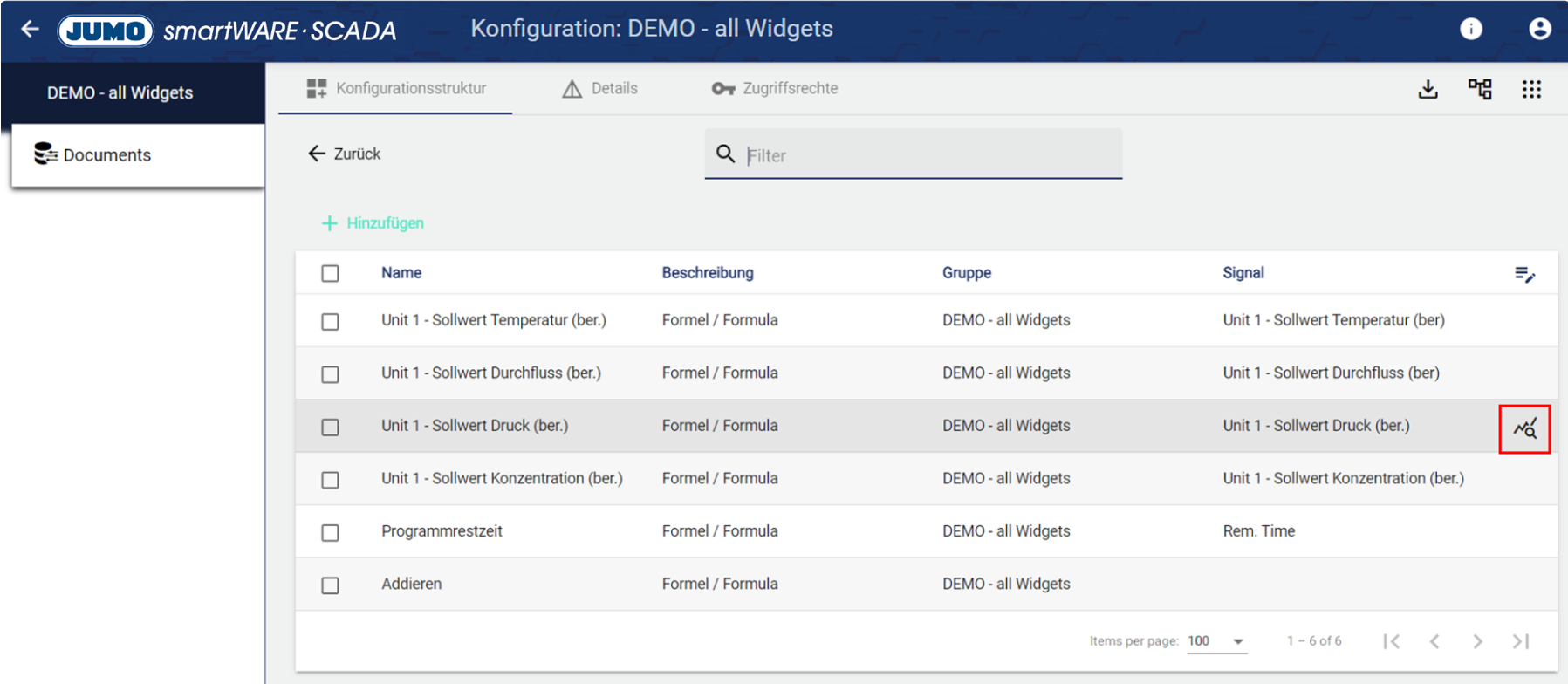 5.) In der Konfiguration lassen sich nun Formeln und deren Werte direkt einsehen und auswerten.