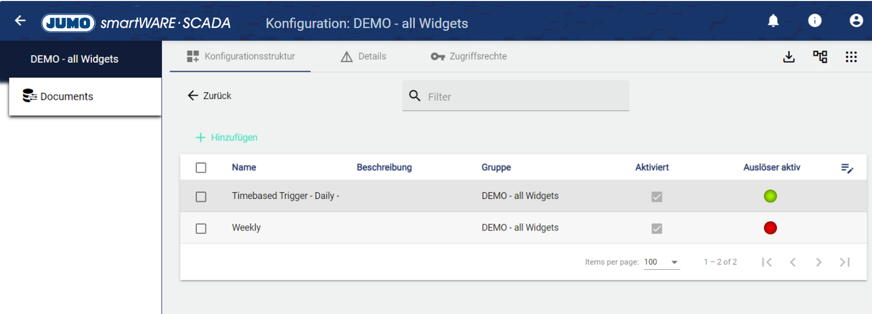 Die Spalte “Auslöser Aktiv” kann über die Tabellen-Editierung oben rechts aktiviert werden.