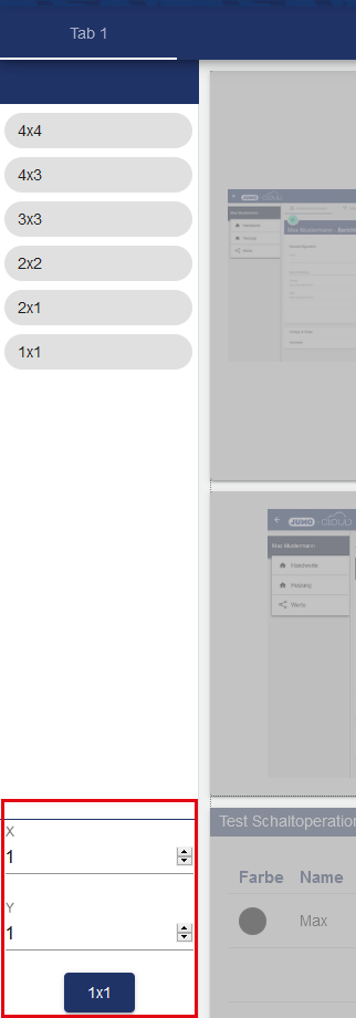 1. Vertikale und horizontale Größe des Widget in den Feldern auf der Seite unten links befüllen. Es werden nur ganze Zahlen akzeptiert!