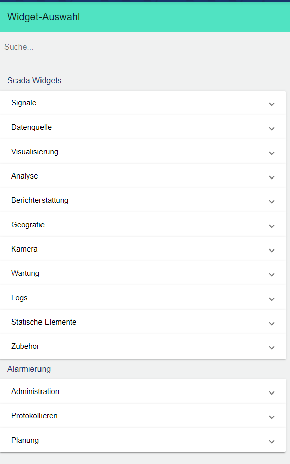 Nutzen Sie die Suchleiste für die schnelle Suche eines bestimmten Widgets.