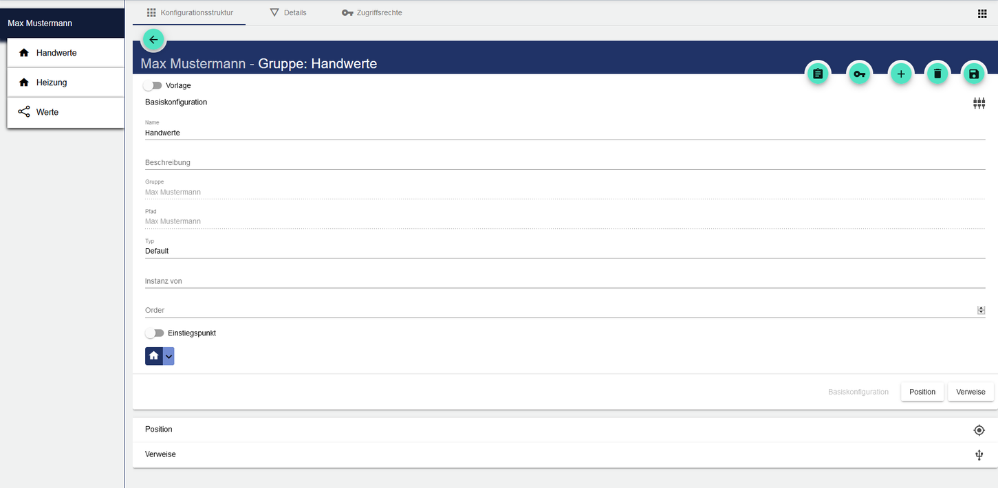 Über die Auswahl “Standard” wird die Gruppe nach einem vordefinierten Standard angelegt. Die Gruppe wird über die Konfigurationsstruktur konfiguriert.