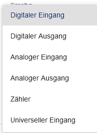 Bei der Auswahl “Signaltyp” öffnet sich ein weiteres Drop-Down-Menü.