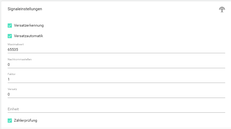 Die Signaleinstellungen sind vom Signaltyp abhängig. Beim Typ Universaleingang, Universalausgang ist dieser Punkt nicht vorhanden.