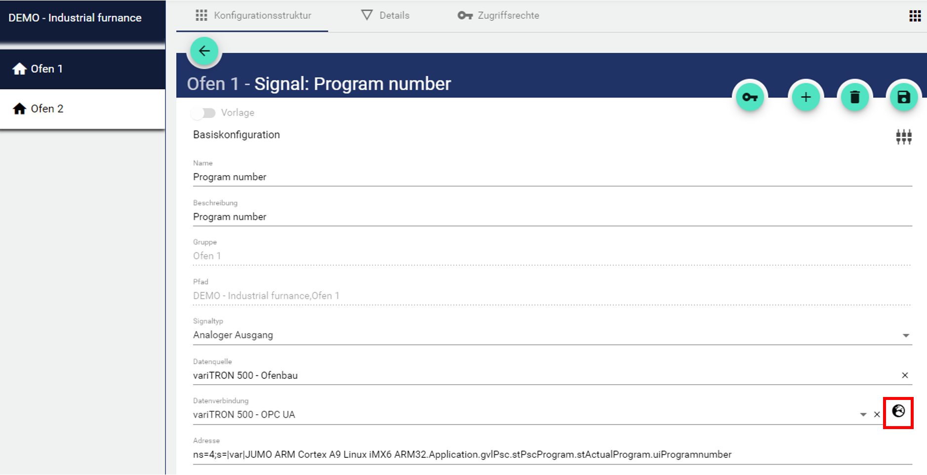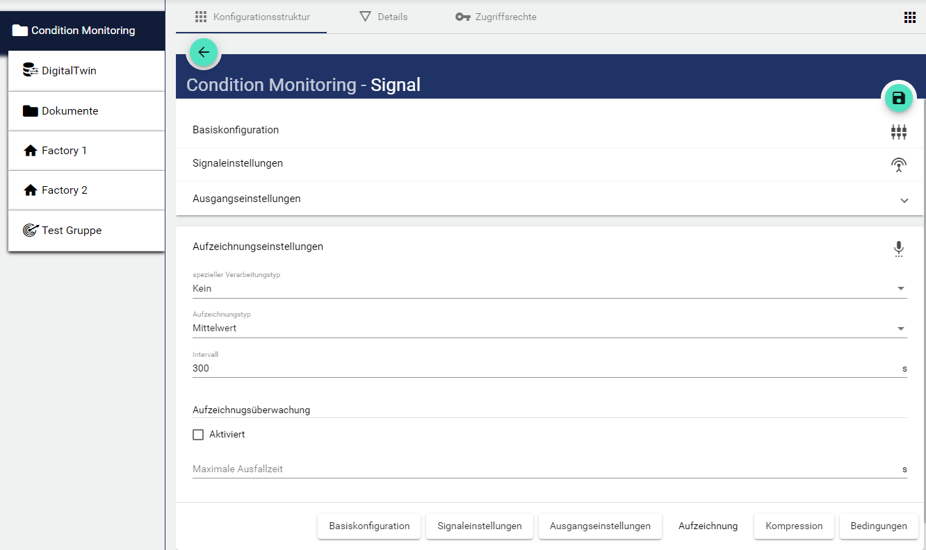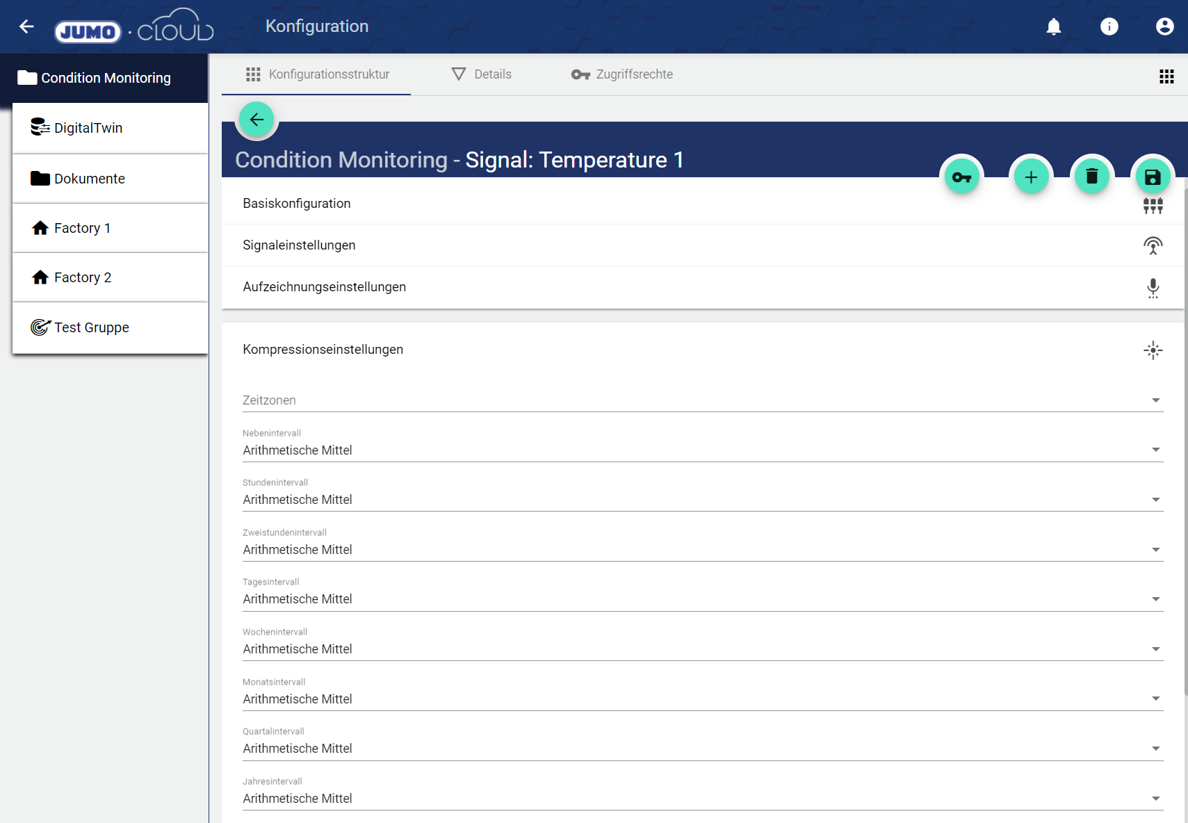 Unter “Intervall” wird angegeben in welchem Sekunden-Abstand das IoT Gerät (z.B. JUMO variTRON) die Signaldaten an die IoT Plattform übermittelt