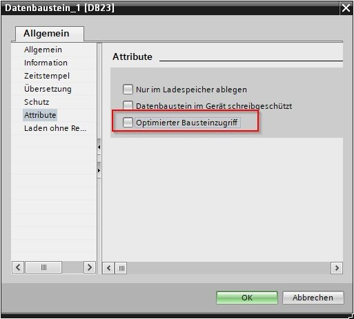 DB10,S20.30 | String bei Offset 20 mit einer Länge von 30 (tatsächliche Array-Länge 32 aufgrund des Formats des String-Typs, Längenbyte wird gelesen/geschrieben) |