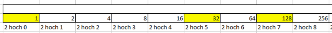 Hier eine Unterstützung bei der Umrechnung: https://bin-dez-hex-umrechner.de/