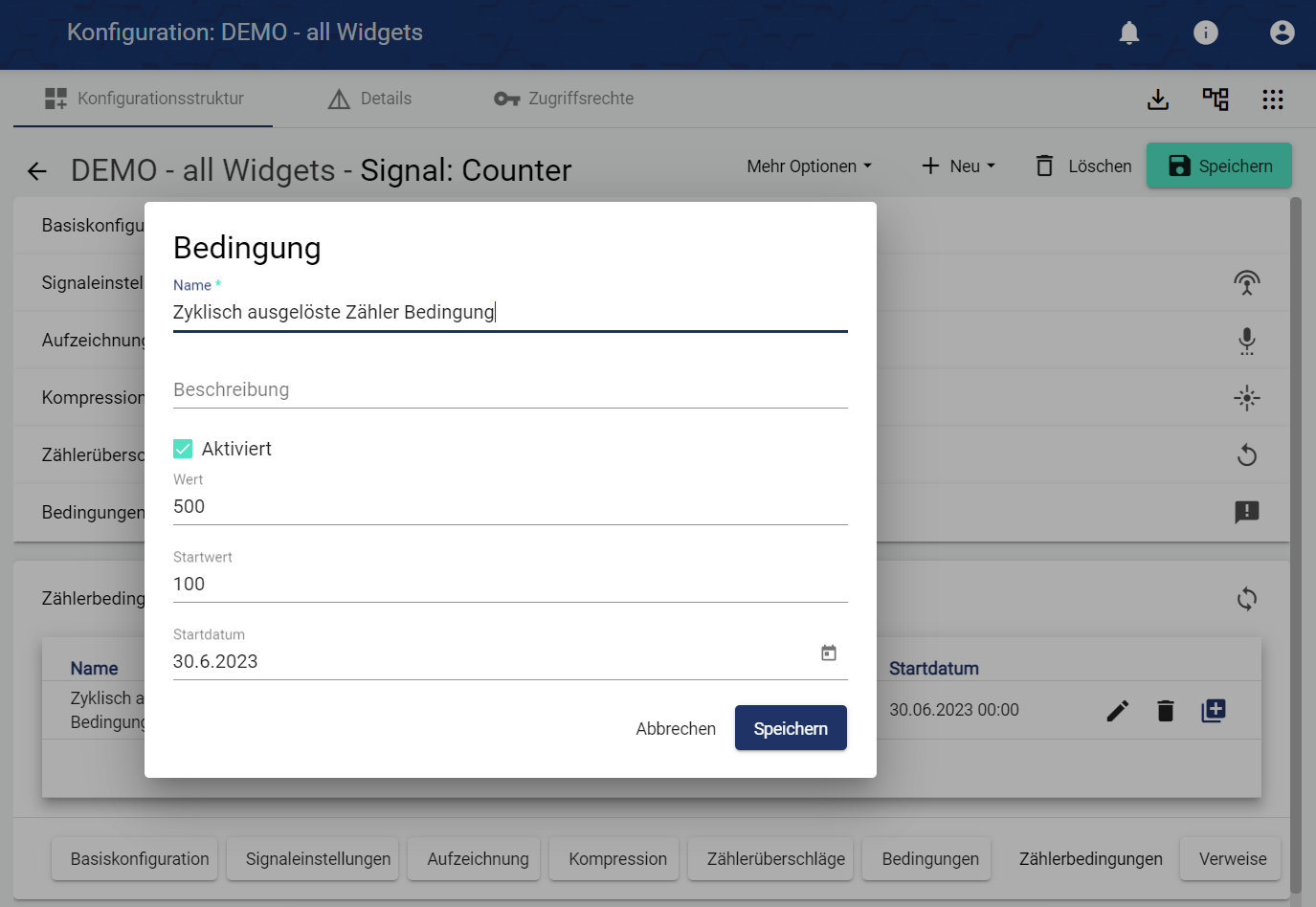 Die Zählerbedingung taucht nur bei Signaltyp “Zähler” auf.