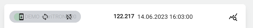 In jedem Signal wird die zugehörige Datenquelle und deren Status angezeigt. Durch ein Hovern über die Datenquelle, kann schnell und einfach die Konfiguration zum Gerät gesendet werden, ohne in den Konfigurationspunkt “Datenquelle” navigieren zu müssen.