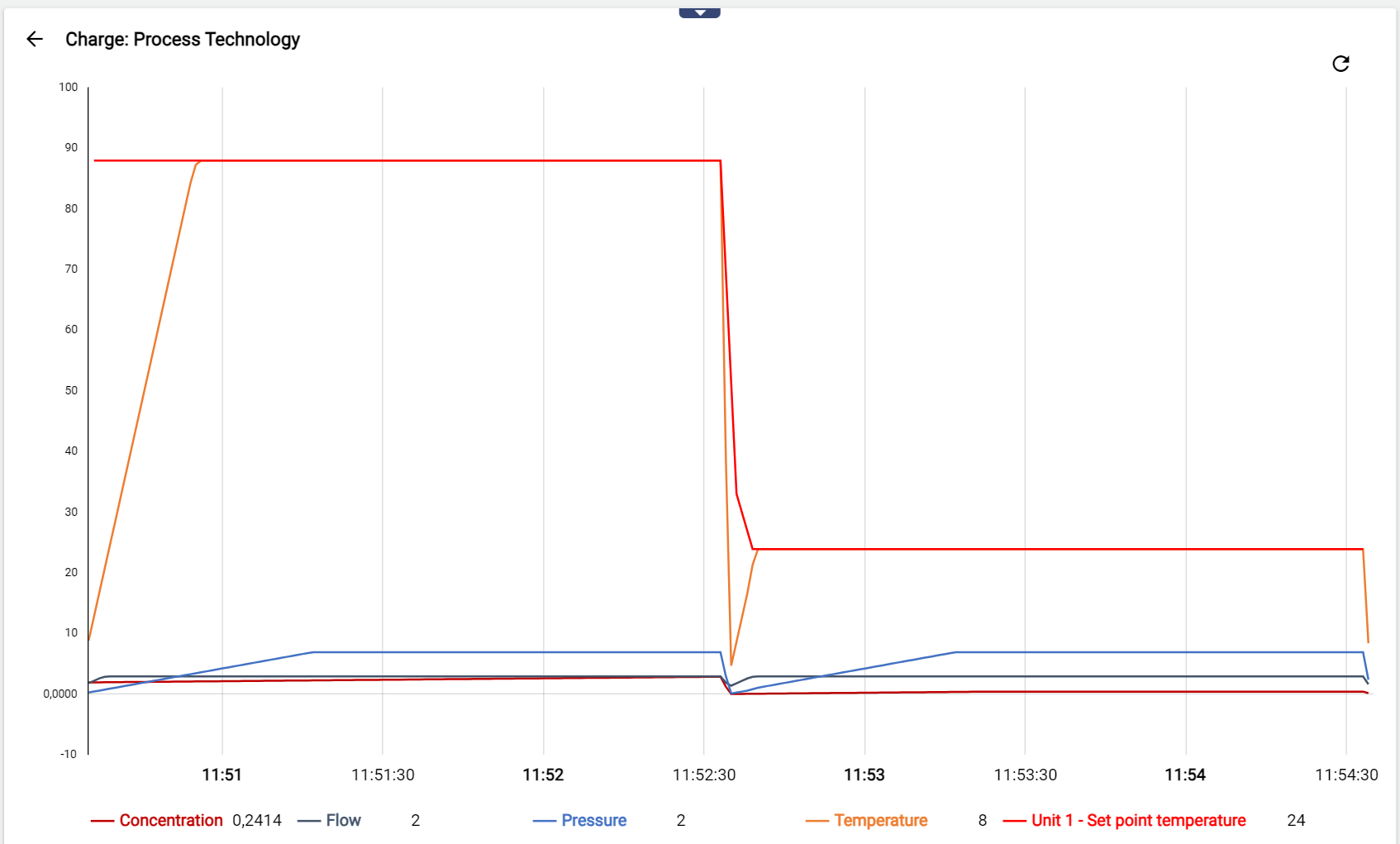 4.) Ab sofort wird die Farbe, die in der Konfiguration für ein Analog- oder Zählersignal definiert wurde, auch in der Chargenansicht, im Bericht und in der historischen Datenansicht verwendet. Mit dieser Funktion wird die Wiedererkennbarkeit gesteigert und die Projektierungszeit gesenkt.