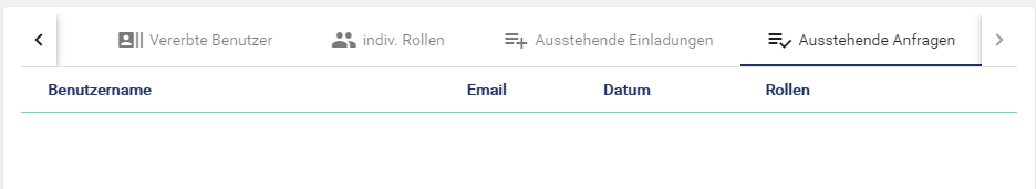 Ausstehende Anfragen | Nur bei “öffentlichen Mandanten“ relevant: Hier wird jede Anfrage (Nutzer möchte für Mandant freigeschaltet werden) angezeigt. |