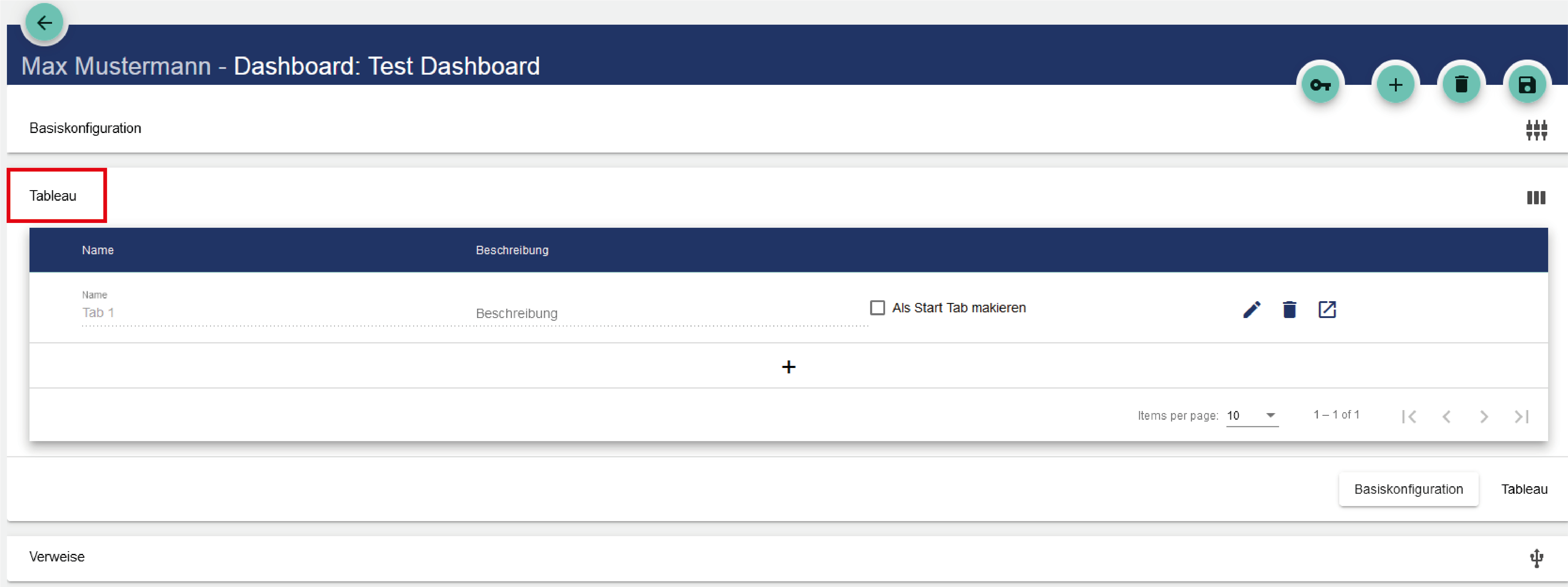 Das Tableau kann entweder direkt bei der Erstellung des Dashboards angelegt werden oder im Nachgang über die Bearbeitung des bestehenden Dashboards.