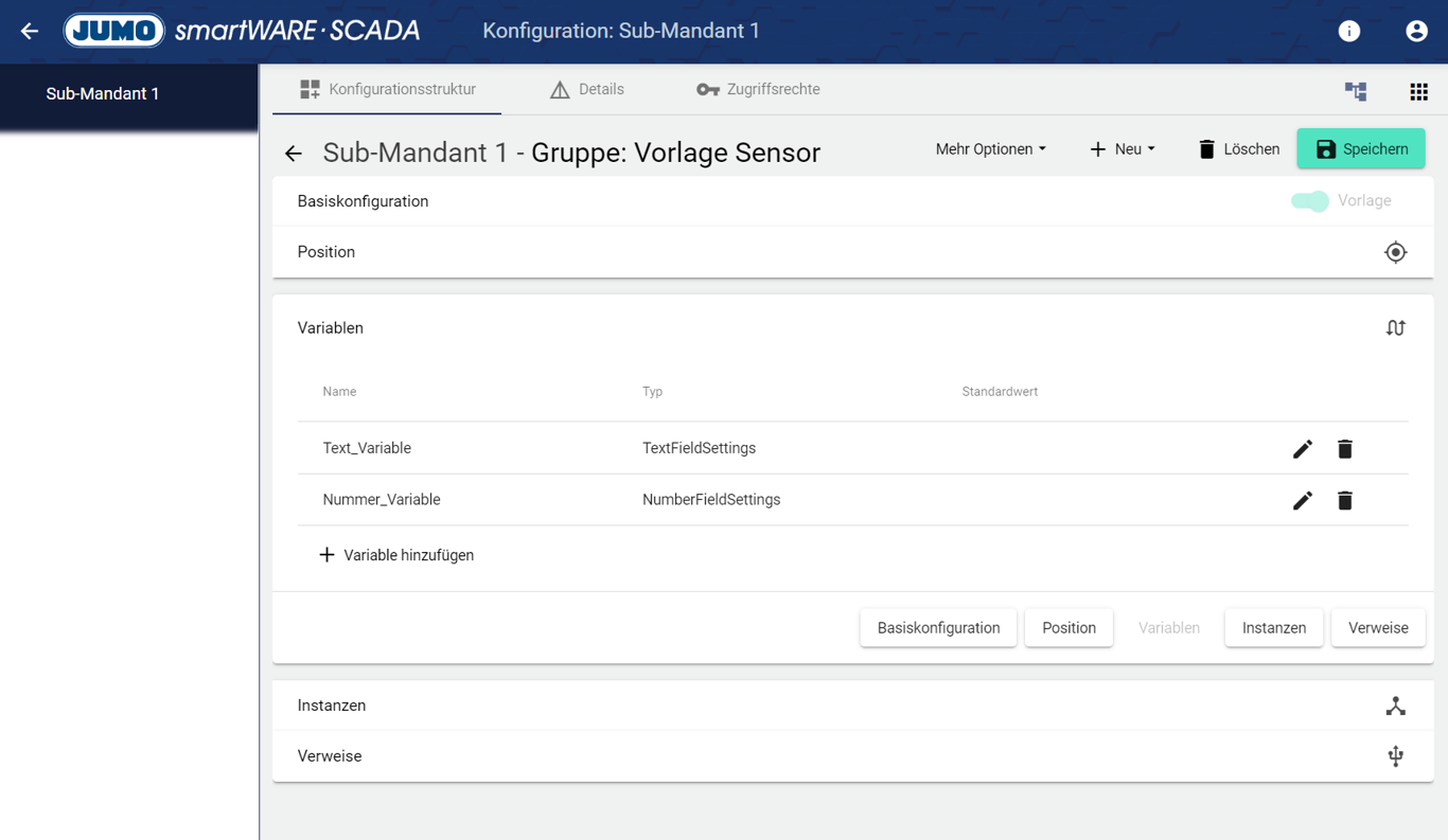 Innerhalb der Instanz-Gruppe können unter “Details” die angelegten Variablen beschrieben werden. Anschließend wird der Wert in jedem Feld, in dem diese verwendet wurde {Text_Variable}, eingetragen.