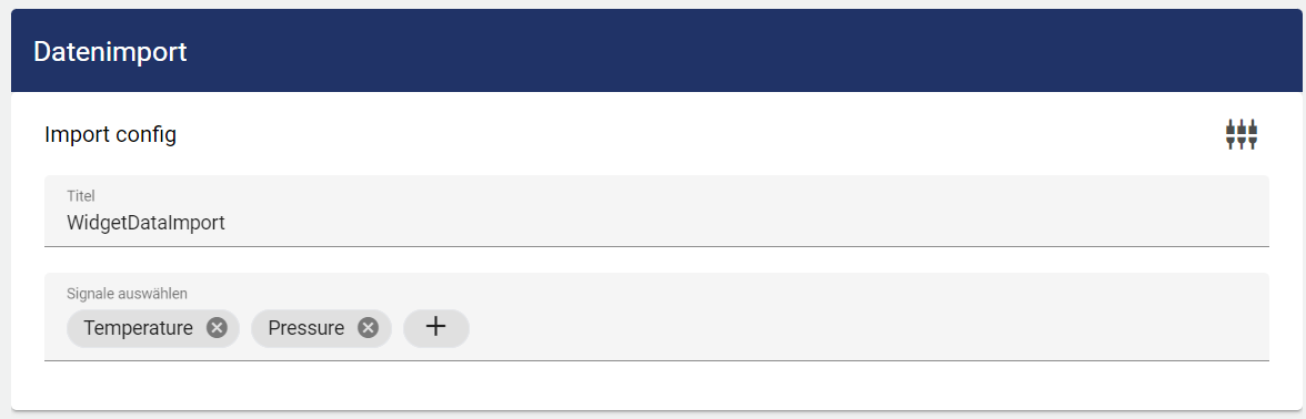 Im Reiter “Import config” kann optional ein Titel eingetragen werden, um die Widgets besser unterscheiden zu können. Des Weiteren müssen die Signale ausgewählt werden, die mit dem Widget importiert werden sollen.