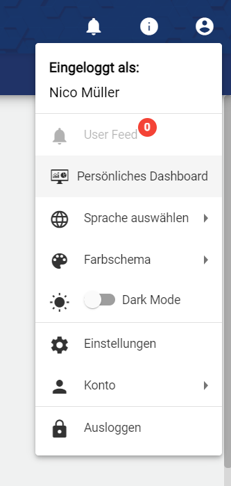 9.) Das Persönliches Dashboard wurde zusätzlich im Benutzermenü verlinkt, sodass Anwender deutlich schneller auf ihr persönliches Dashboard gelangen.