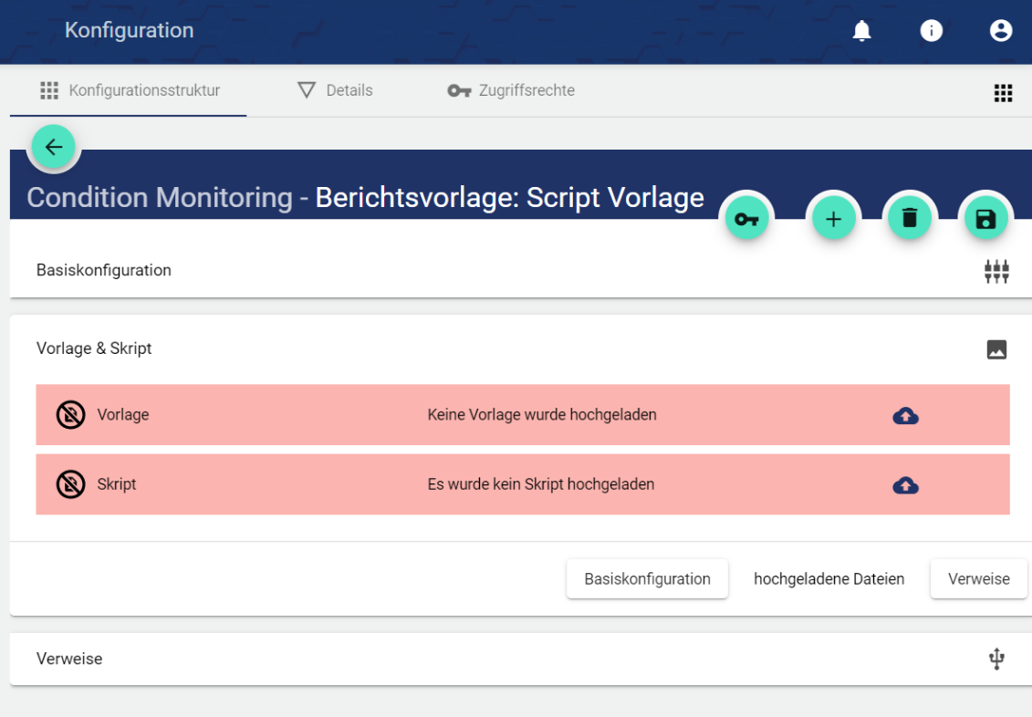 Name der Berichtsvorlage in der Basiskonfiguration vergeben. Das Feld Beschreibung ist optional nutzbar. Das Feld “Gruppe” zeigt, in welcher Gruppe diese Berichtsvorlage angelegt wurde. Der Pfad wird systemseitig automatisch generiert.