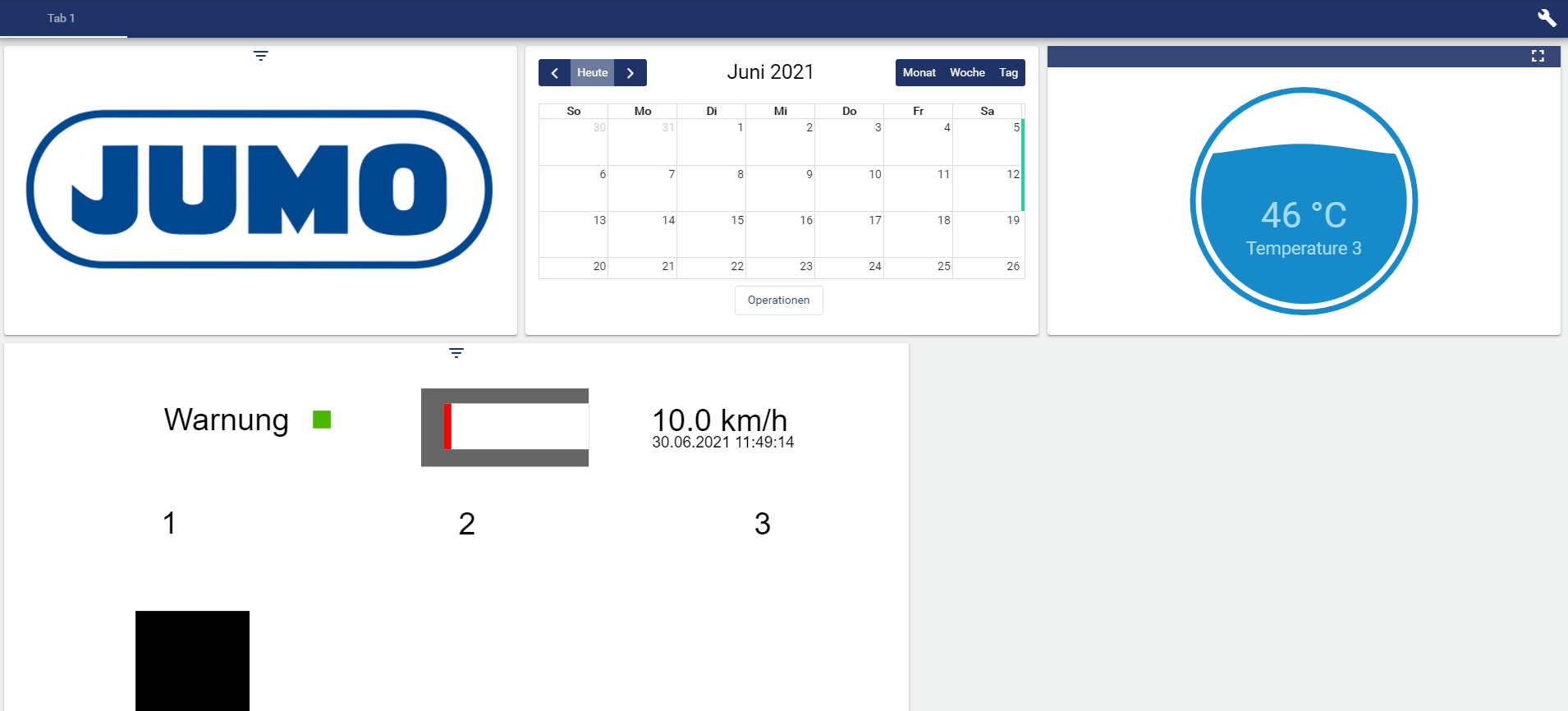 Das Dashboard ist das zentrale Element zum Steuern und Visualisieren von Prozessinformationen in Form von Widgets.