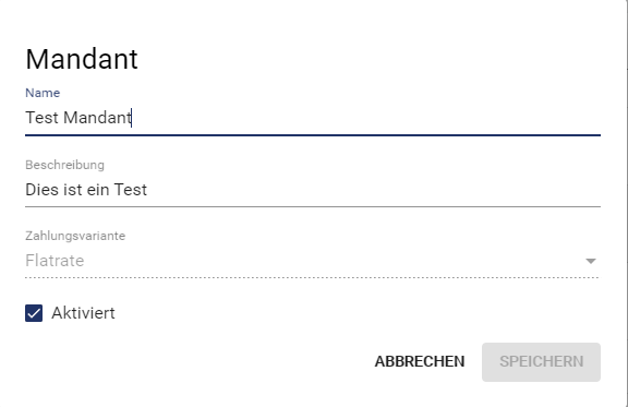 Aktiviert | Bestimmt ob der Mandant aktiviert oder deaktiviert ist. |