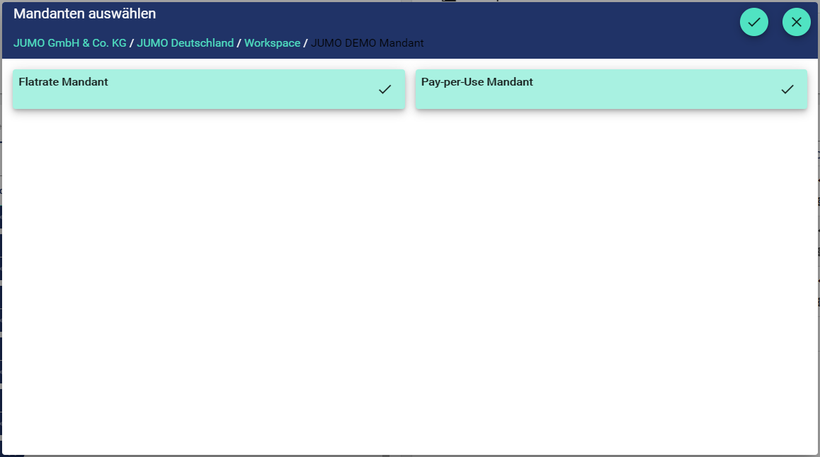 Anschließend kann der gewünschte Mandant über den Haken ausgewählt werden. Der Mandant wird nun ein Untermandant dieses Mandanten.